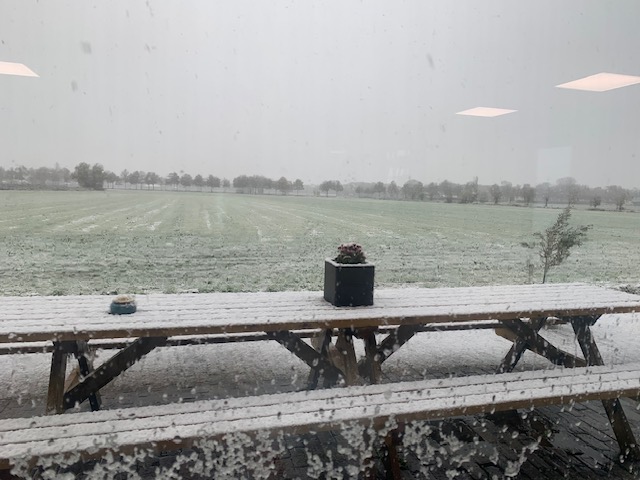 Vanuit de kantine kun je fijn wegkijken. Een landelijk, ruimtelijk en weids uitzicht.